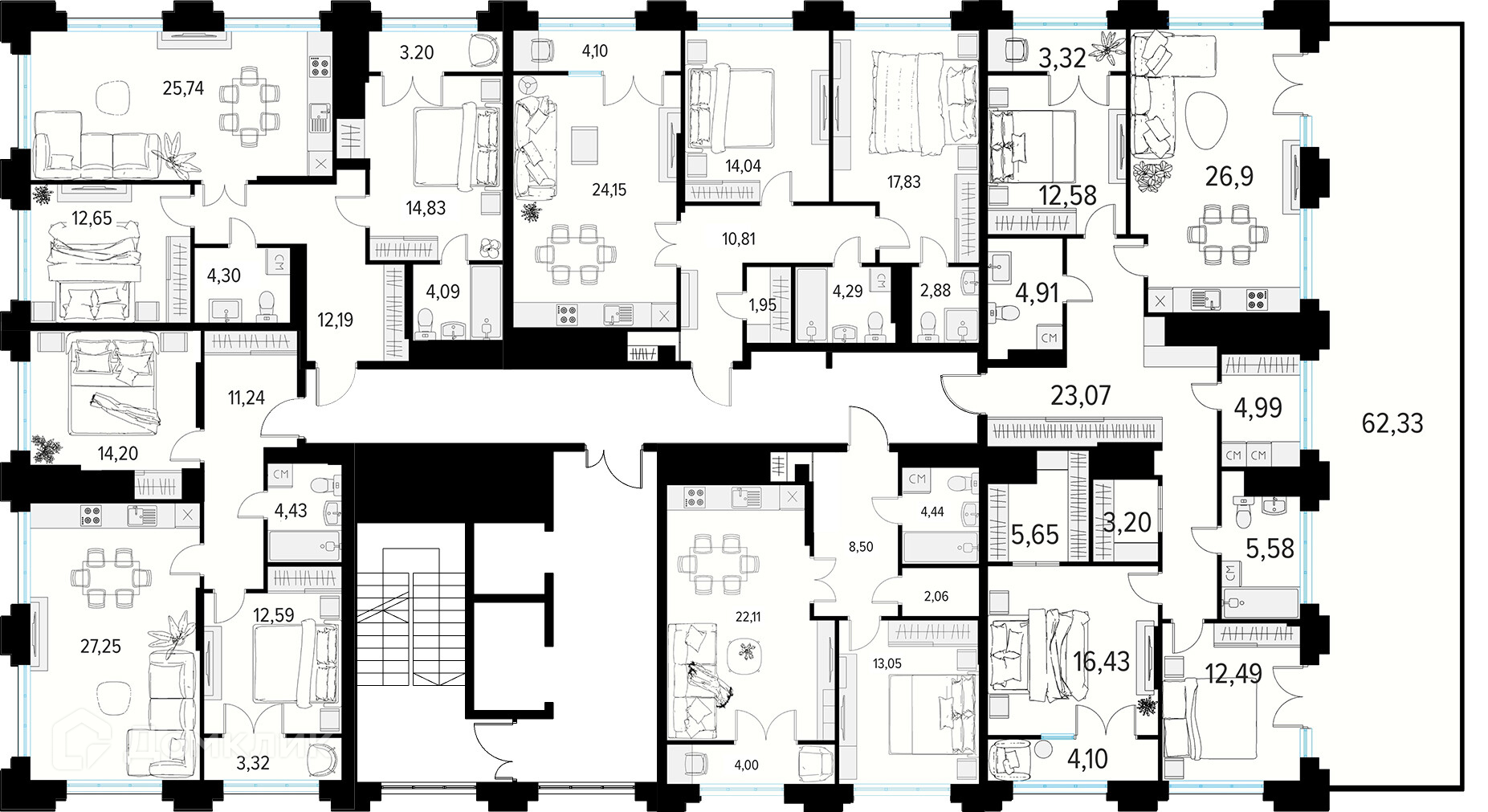 Площади квартир