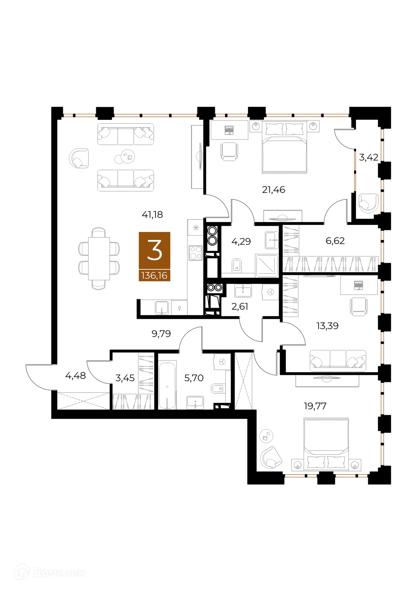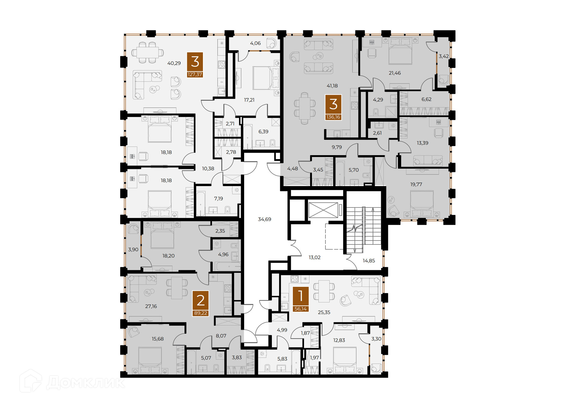 Площади квартир