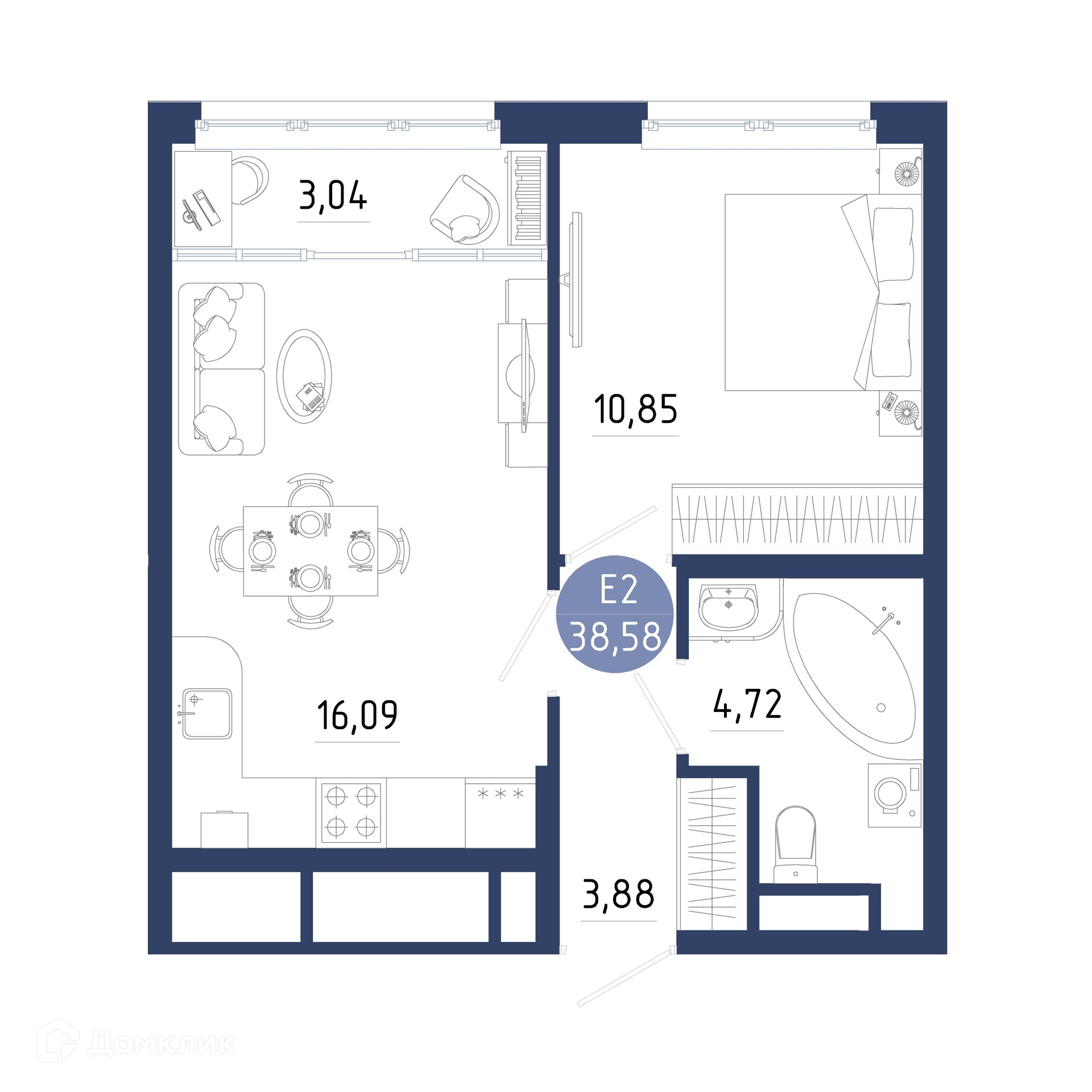 Планировка 1 комн. в ЖК Бульвар оптимистов