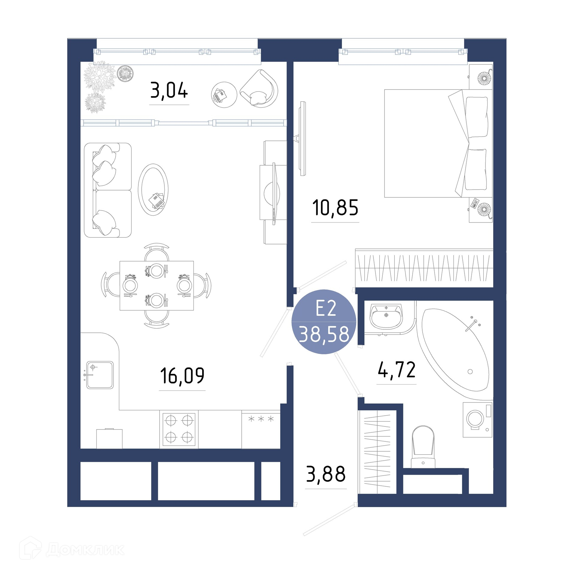 Планировка 1 комн. в ЖК Бульвар оптимистов