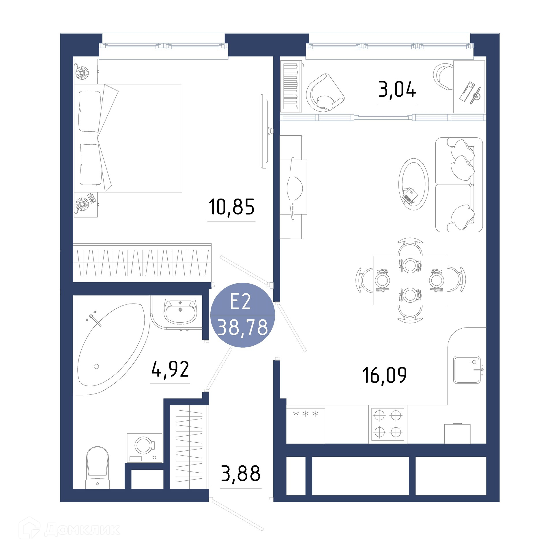Планировка 1 комн. в ЖК Бульвар оптимистов