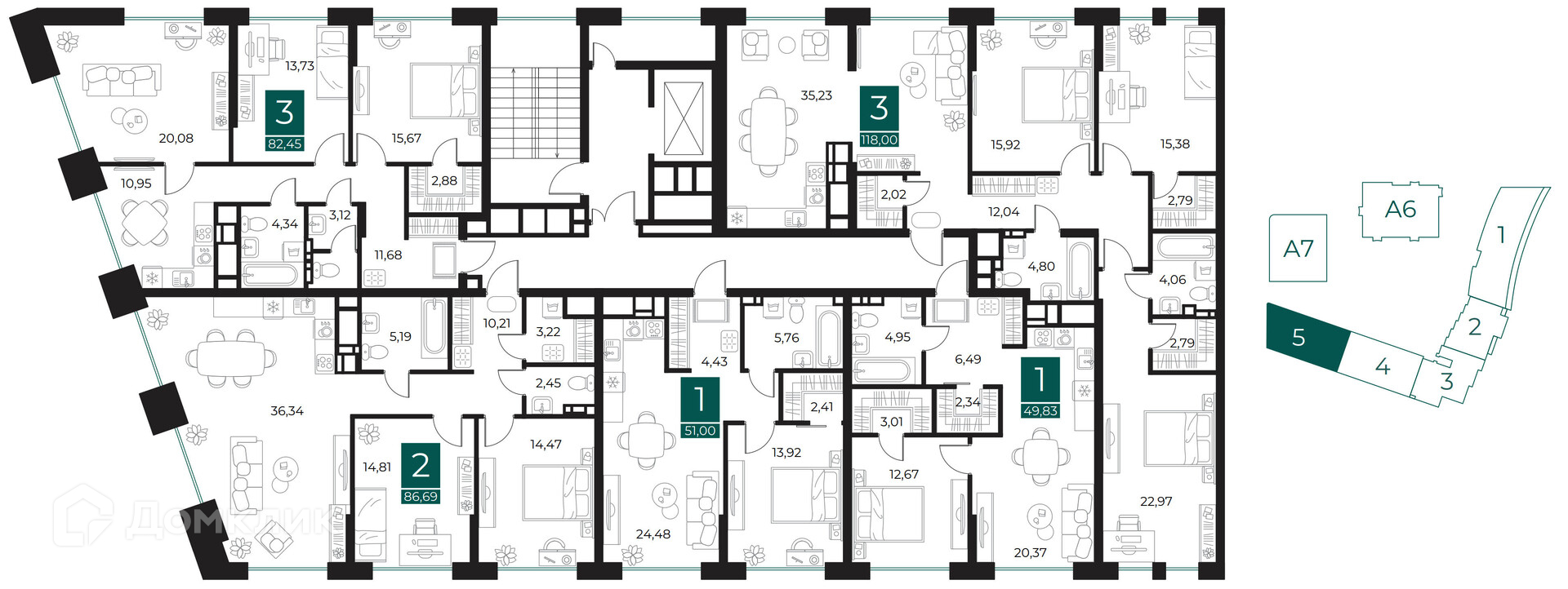 Площади квартир