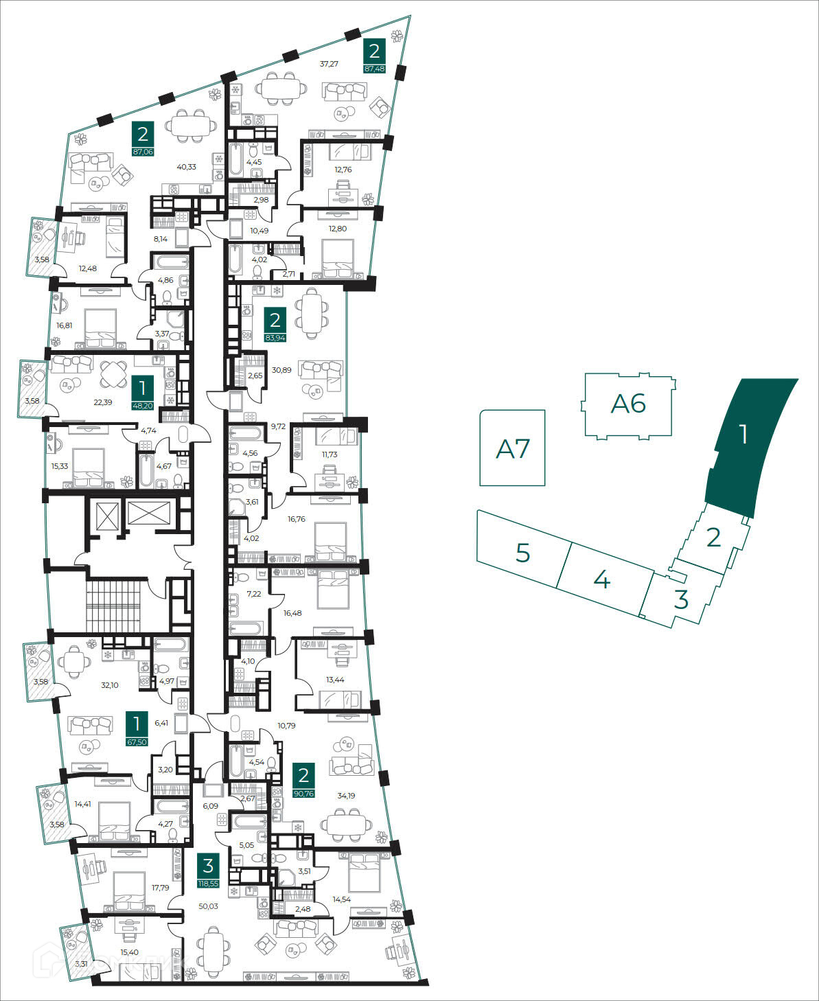 Площади квартир