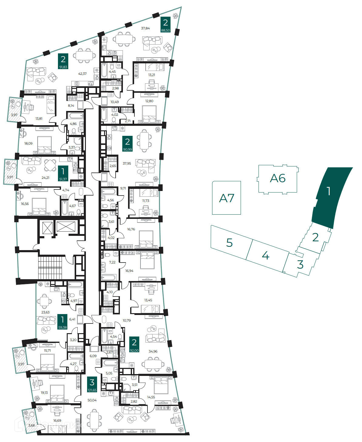 Площади квартир