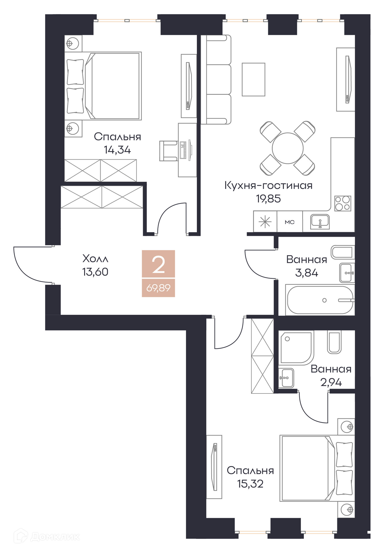 - ✅ Кухня: 19.85 м² — идеальна для семейных ужинов.