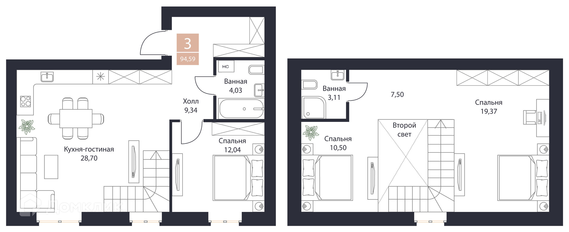 - ✅ Кухня: 28.7 м² — место для кулинарных шедевров.