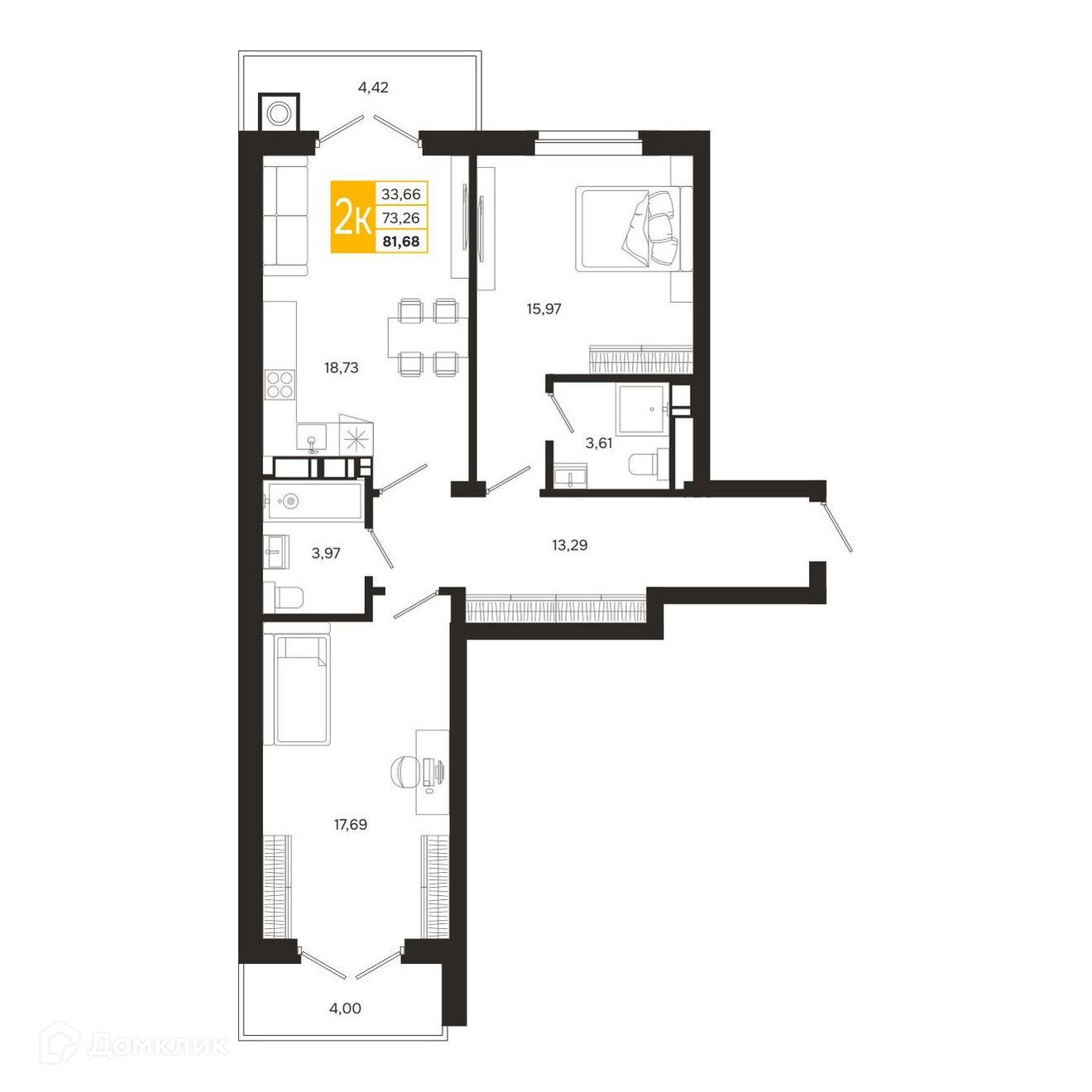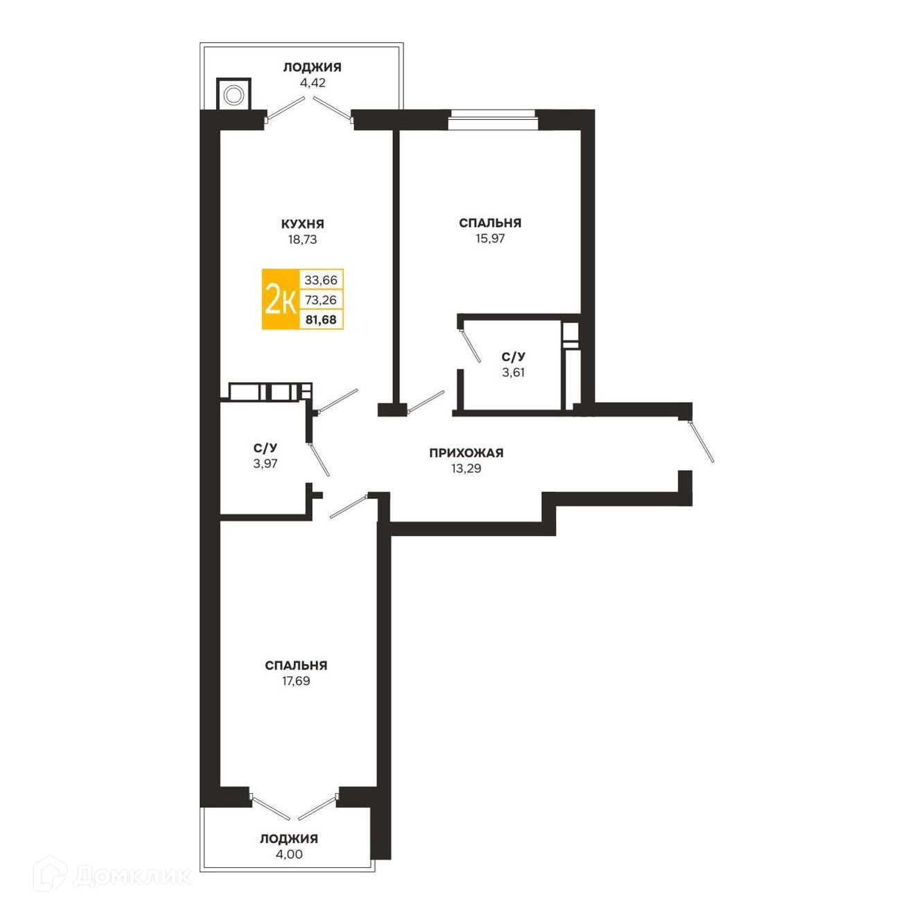 - Общая площадь: 81.68 м²