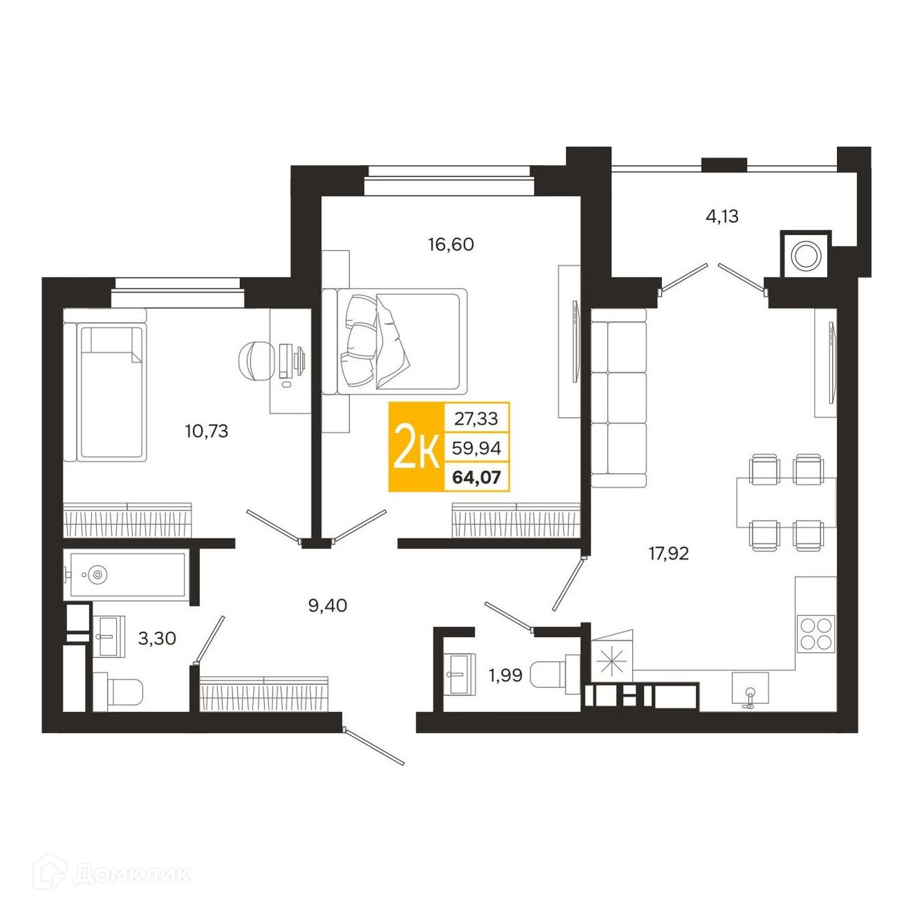- Жилая площадь: 27.33 м²