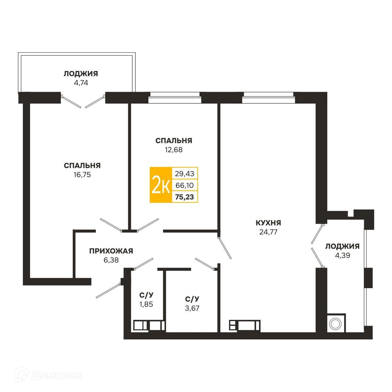 Планировка 2 комн. в ЖК Ривер Парк