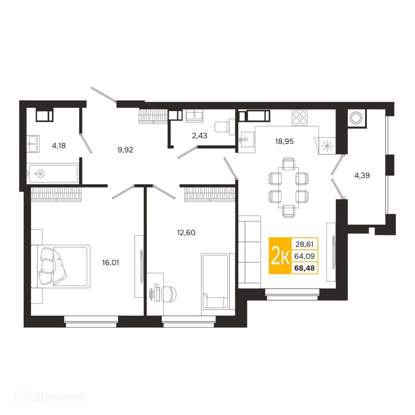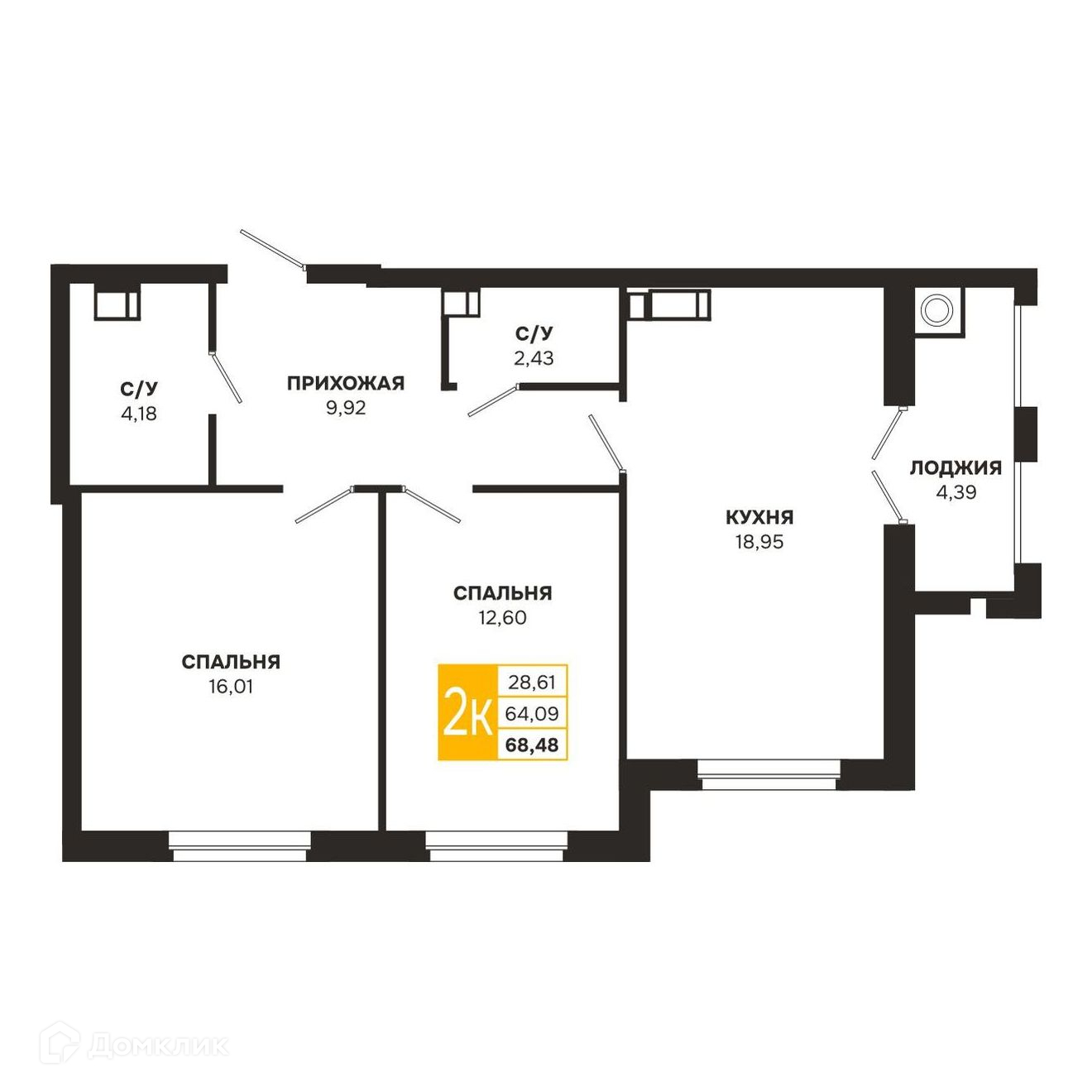 - Общая площадь: 68.48 м²