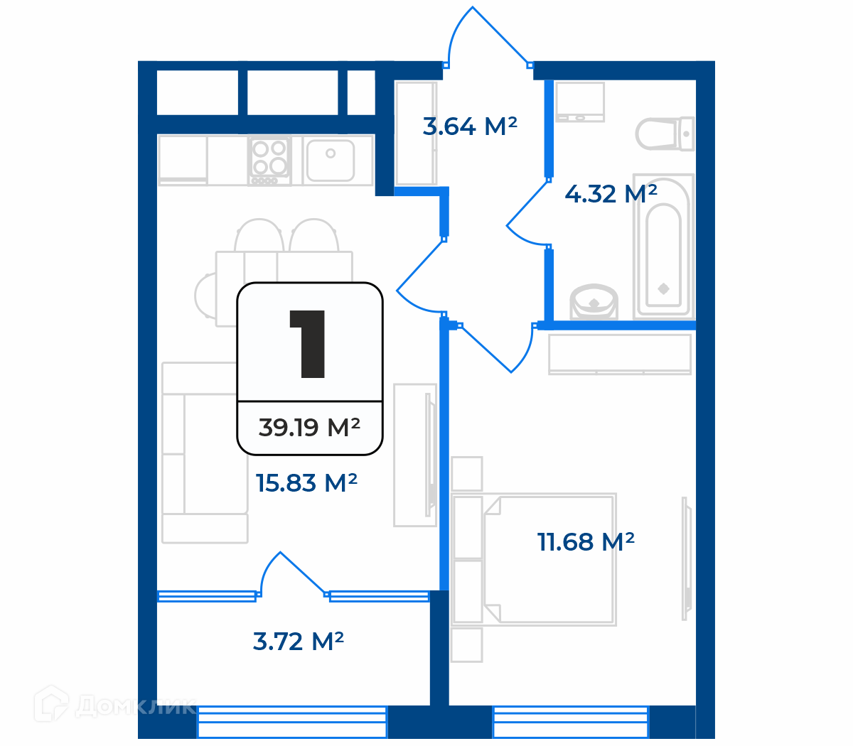 - ✅ Кухня: 15.83 м² — идеальна для семейных ужинов.