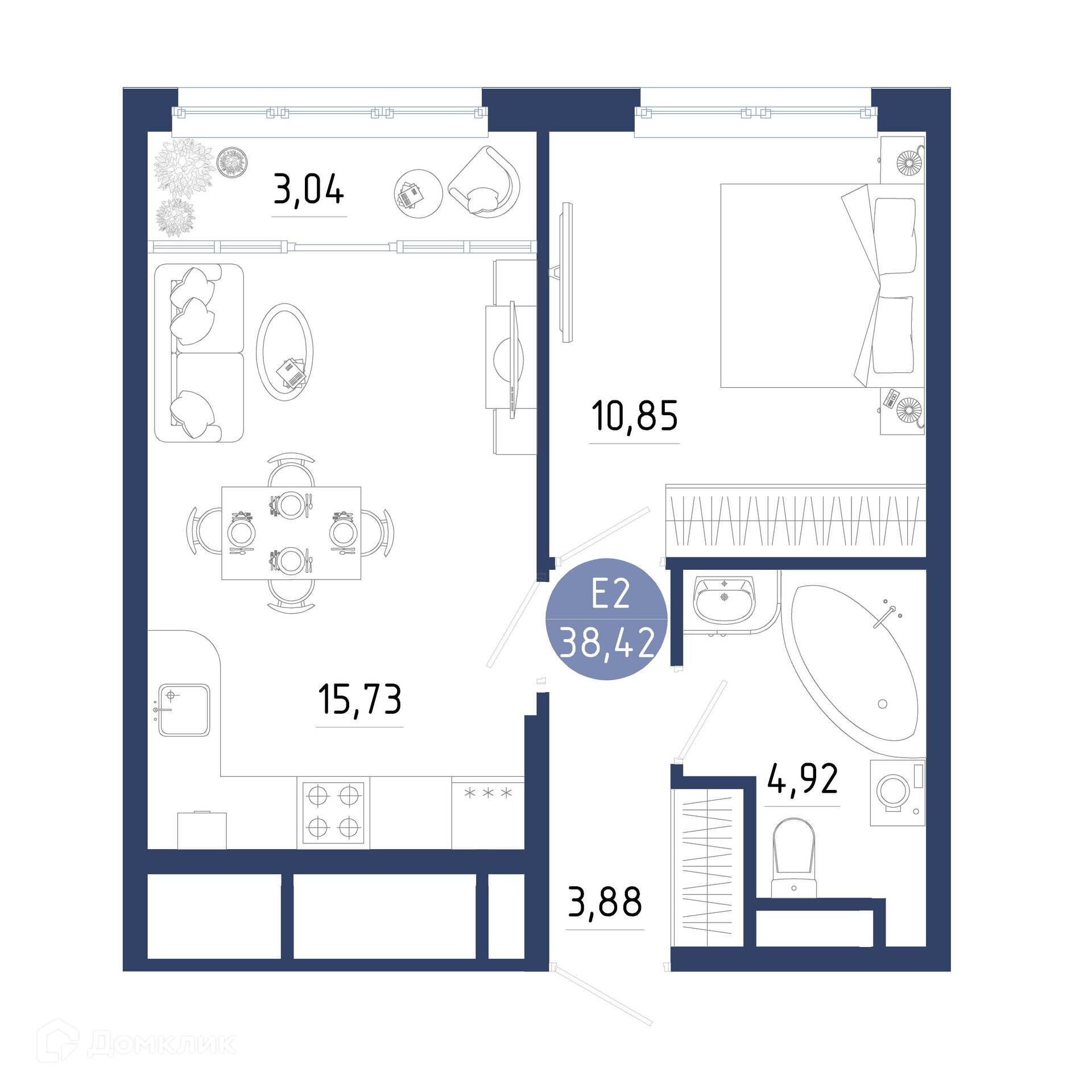 Планировка 1 комн. в ЖК Бульвар оптимистов