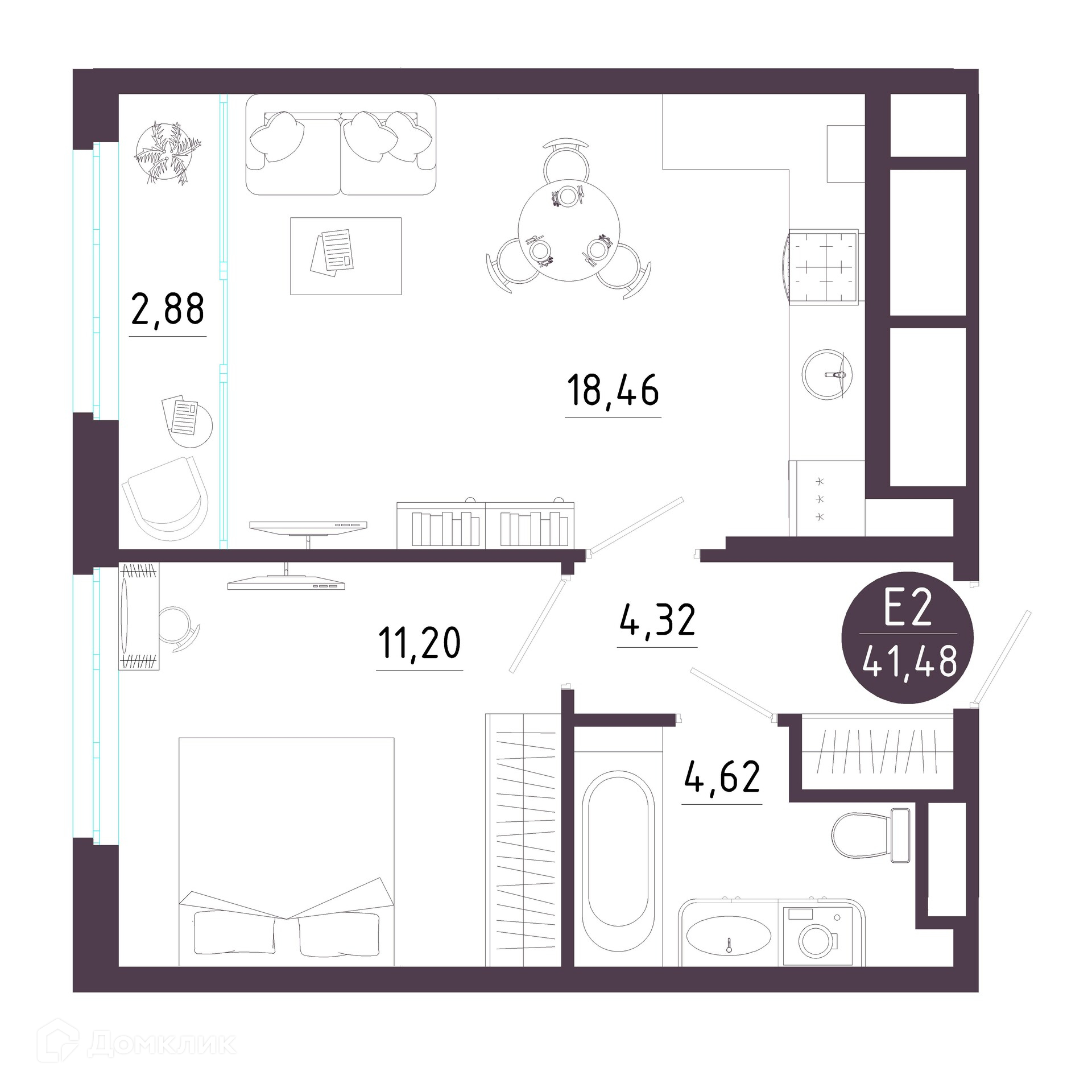 Планировка 2 комн. в ЖК Крылья