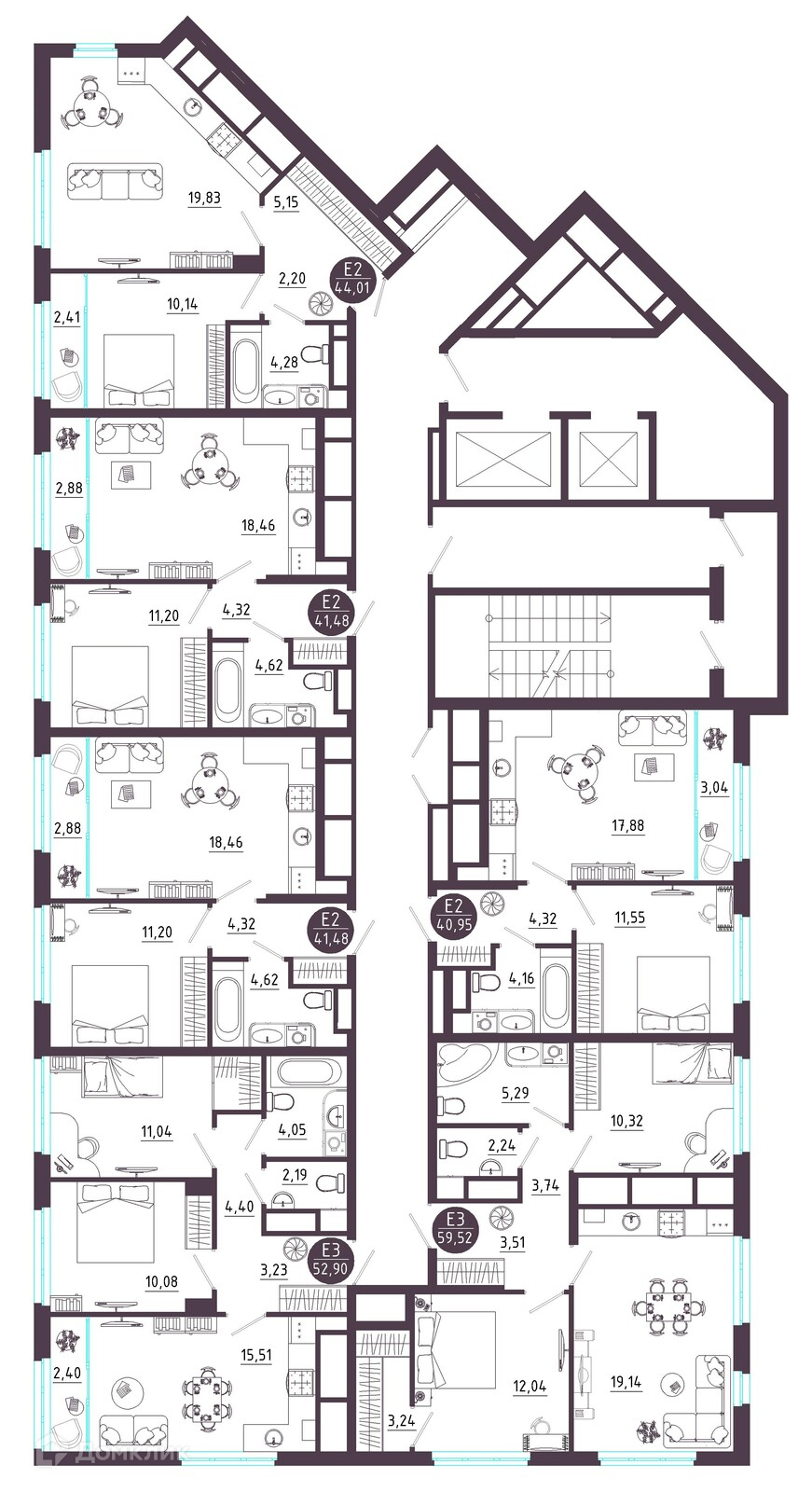 Площади квартир