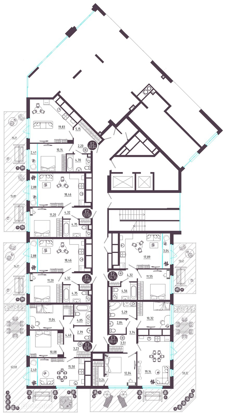 Площади квартир
