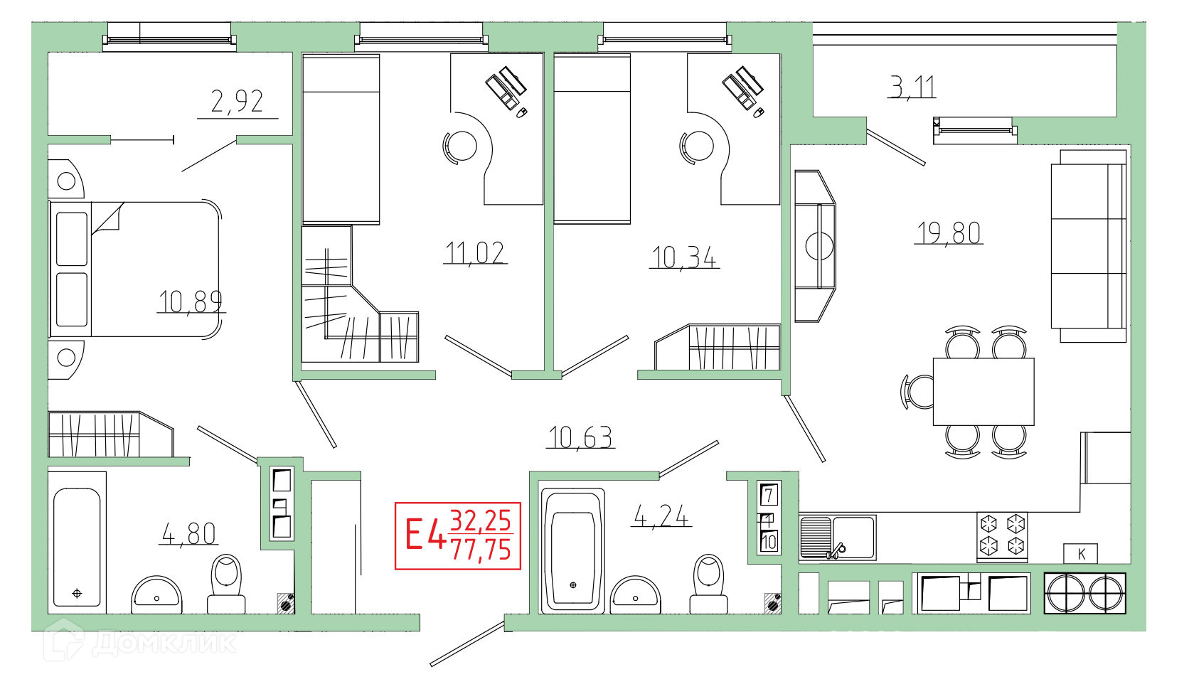 Площади квартир