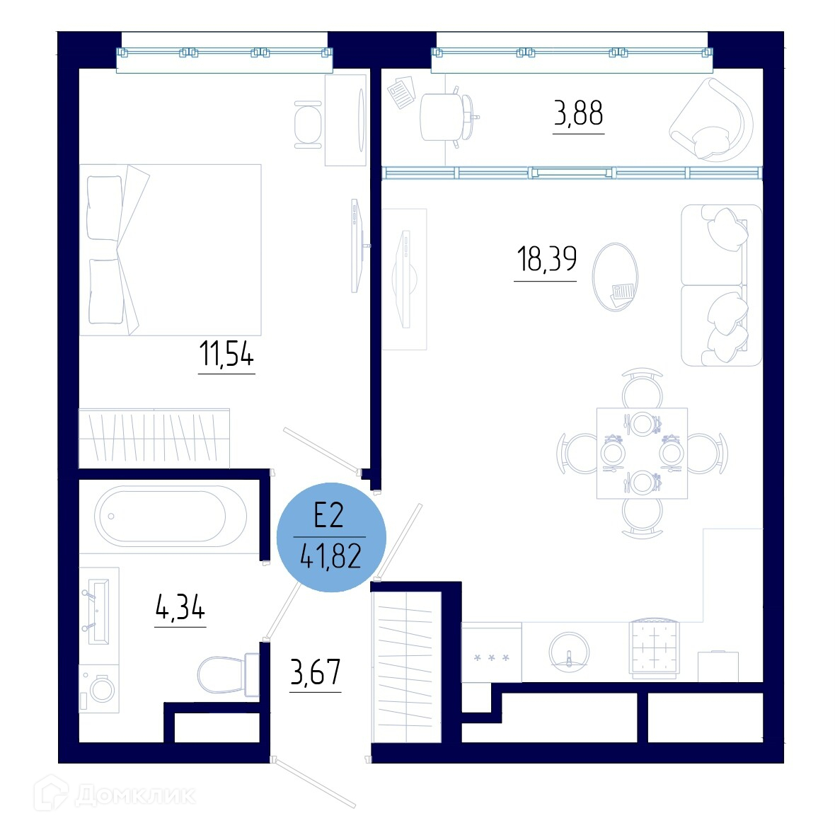 Планировка 1 комн. в ЖК Бульвар оптимистов