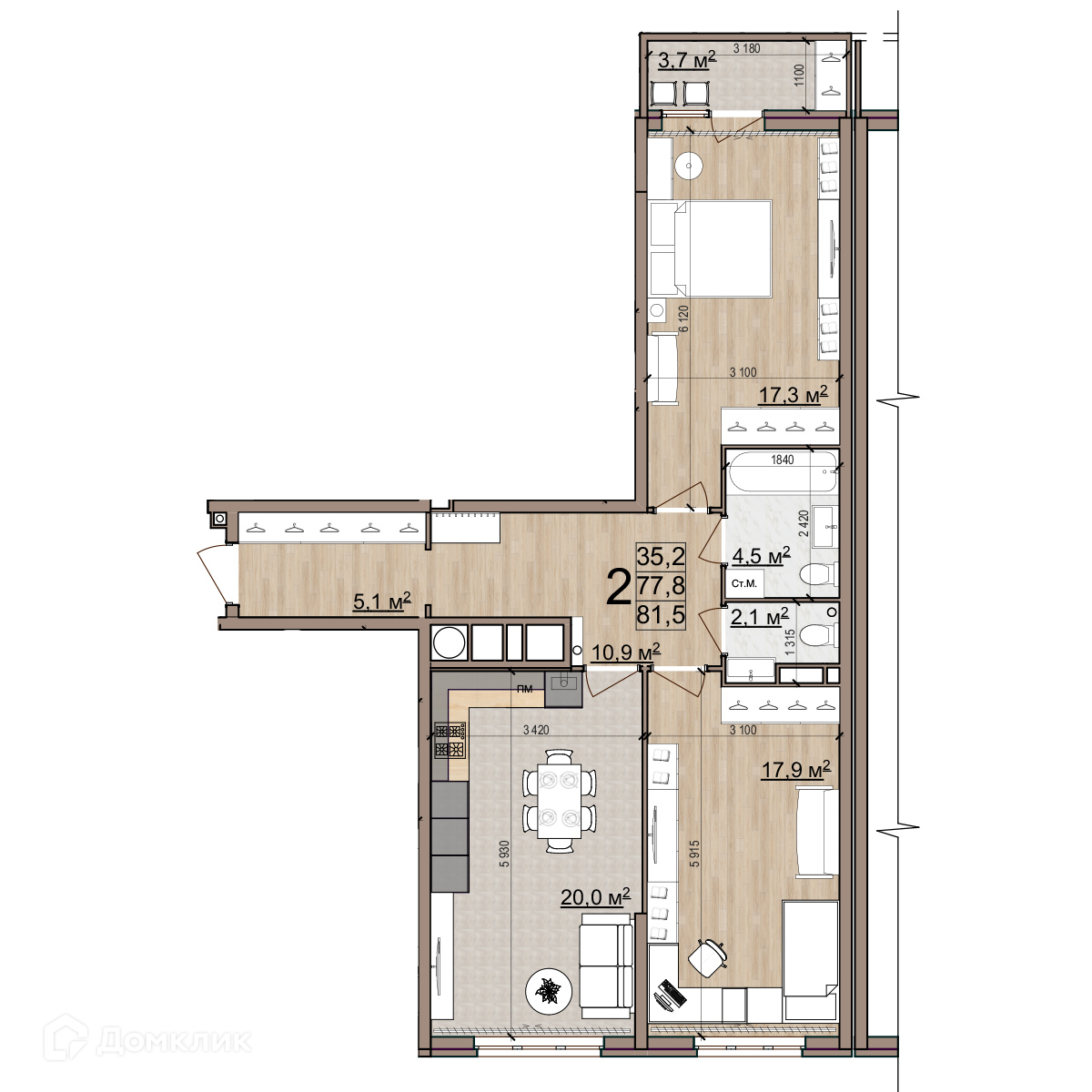 - ✅ Кухня: 20 м² — место для кулинарных шедевров.