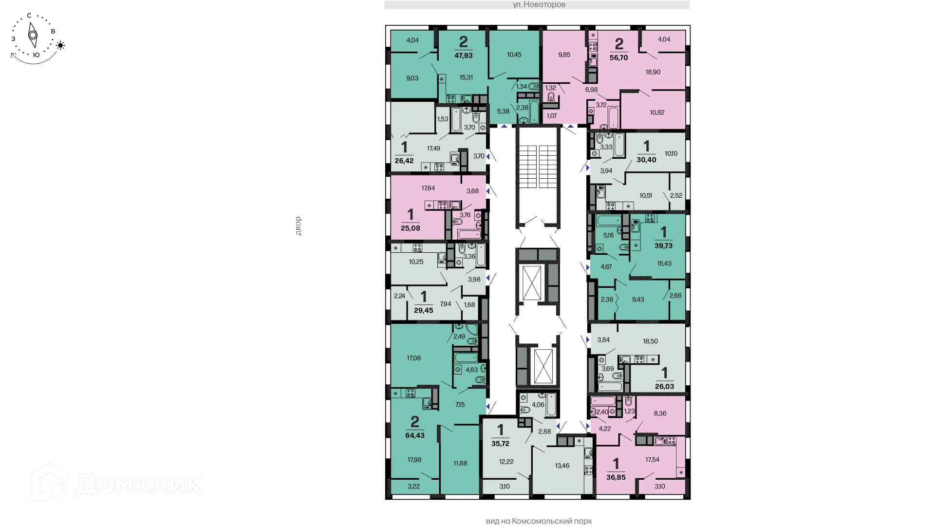 25.08 - 64.43 м²