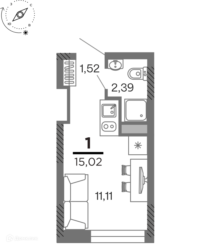 - Общая площадь: 15.02 м²