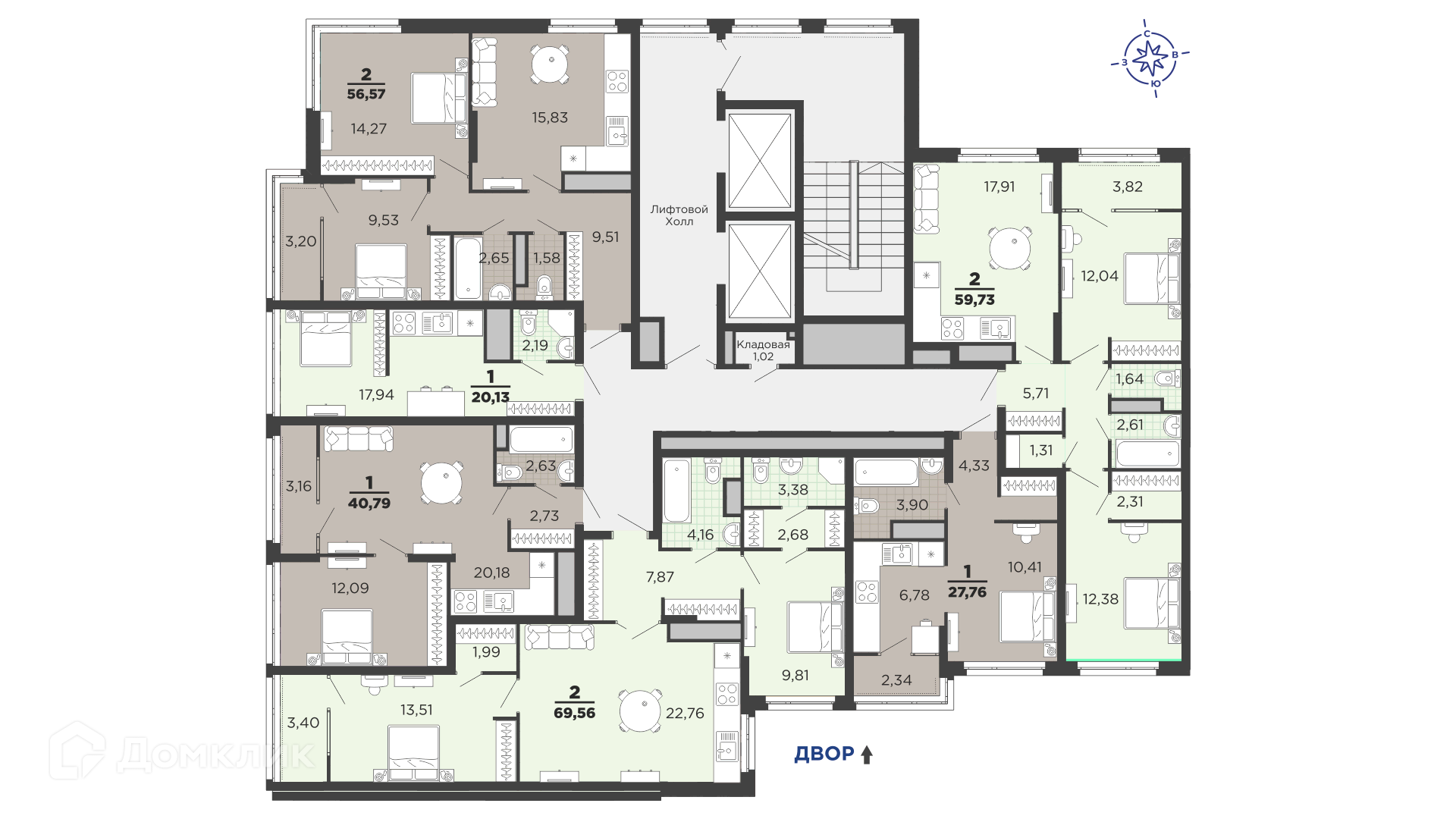 Площади квартир