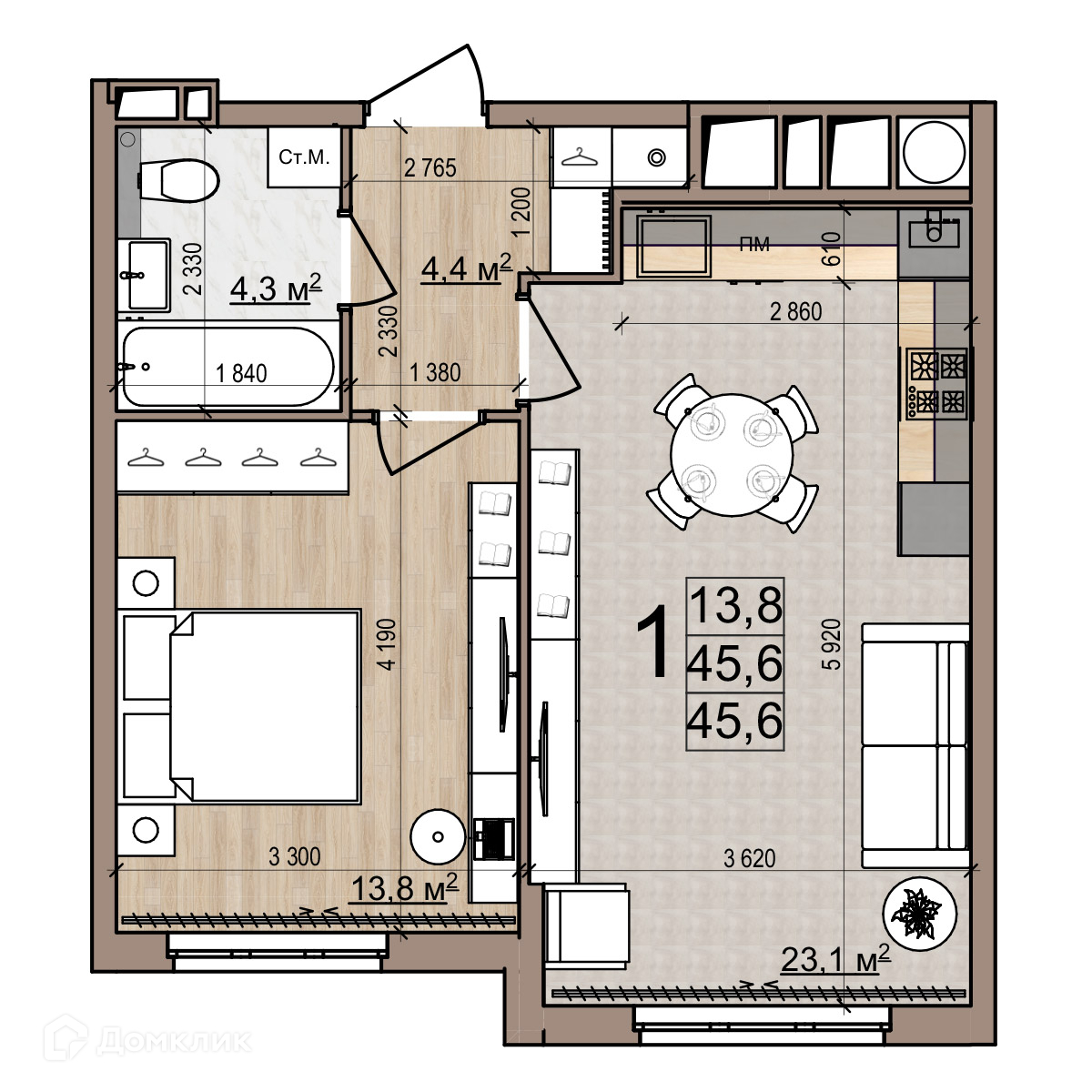 - ✅ Кухня: 23.1 м² — идеальна для семейных ужинов.