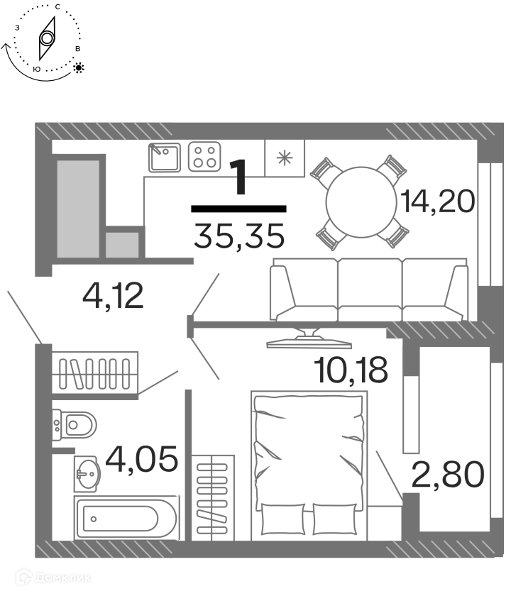 - Общая площадь: 35.35 м²