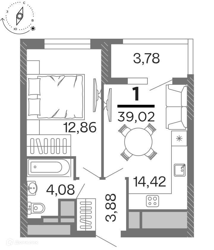- ✅ Кухня: 14.42 м² — место для кулинарных шедевров.