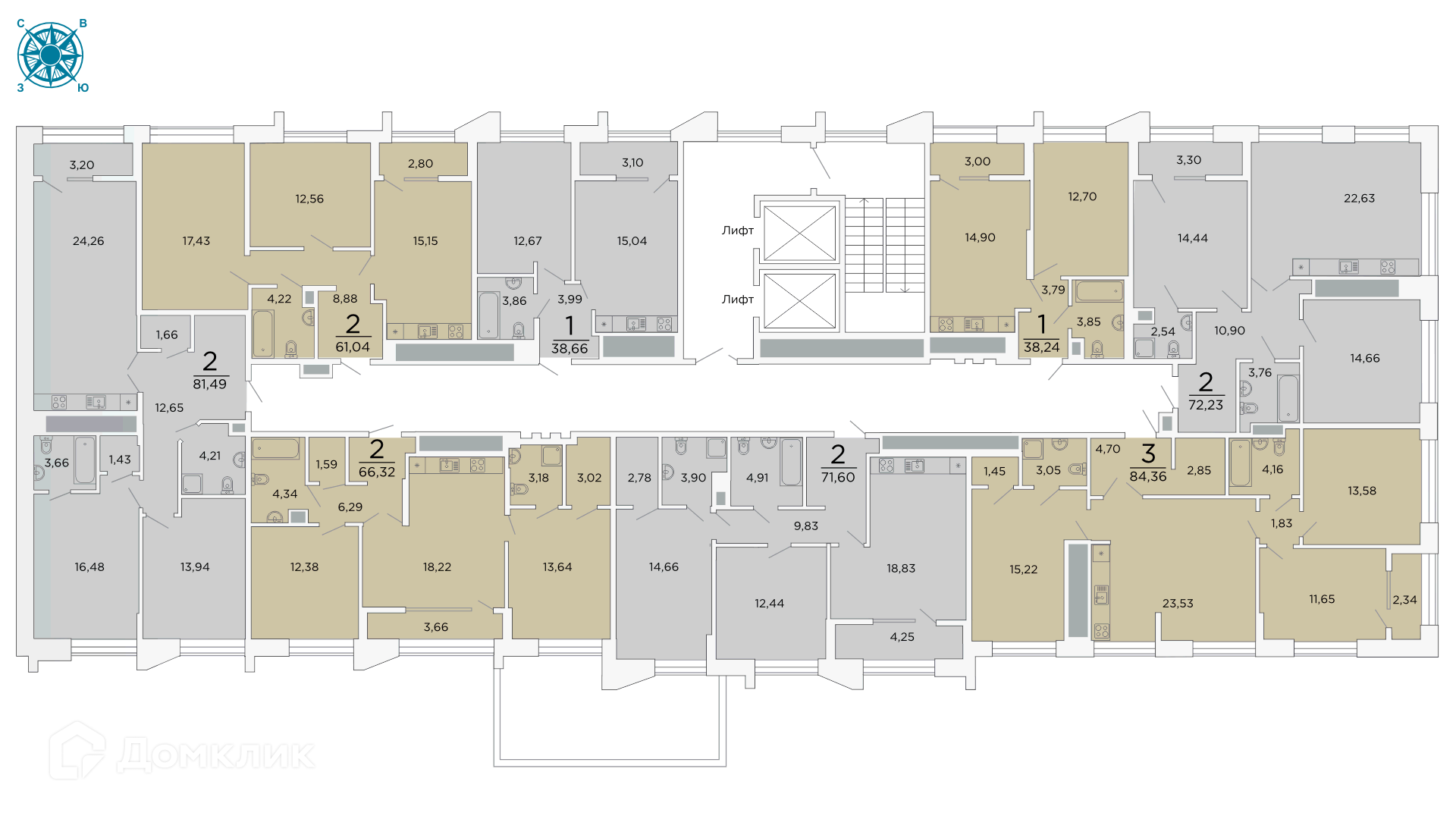 Площади квартир