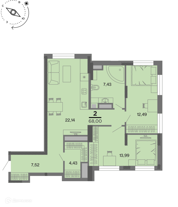 Доступна к покупке 2-комнатная квартира в новом жилом комплексе "Метропарк" 🏢. Квартира расположена на 12-м этаже 22-этажного дома. Прекрасный выбор для семьи.
