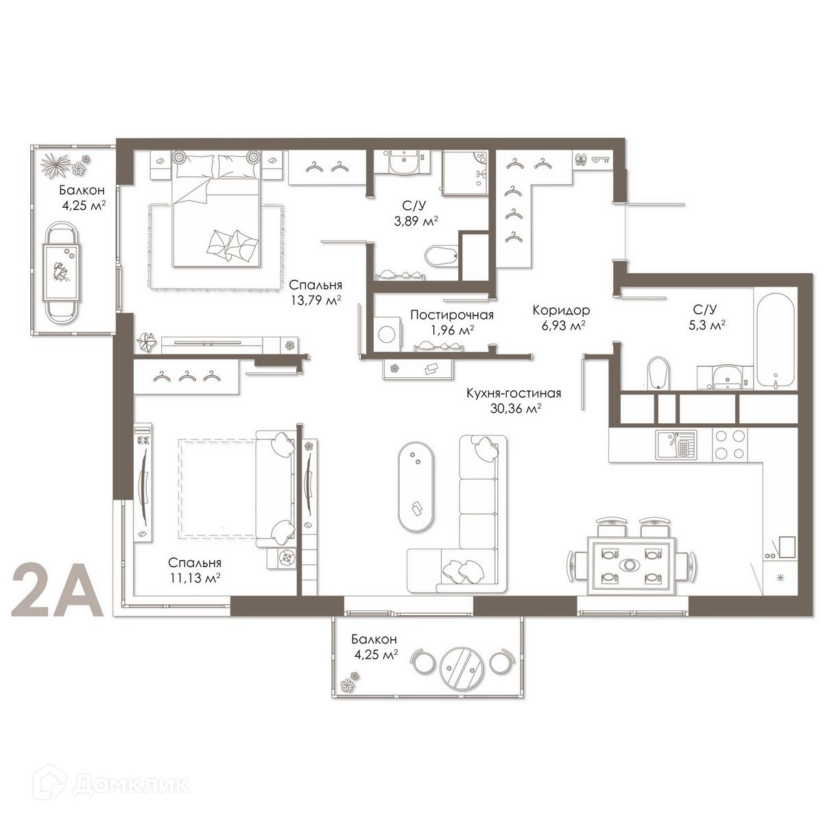 - Количество комнат: 2-комнатная квартира