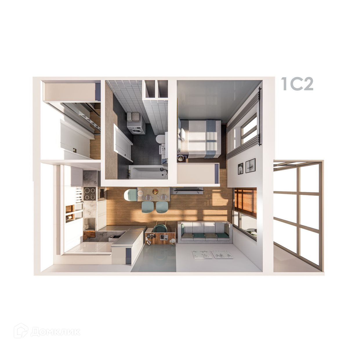 - Общая площадь: 32.95 м²