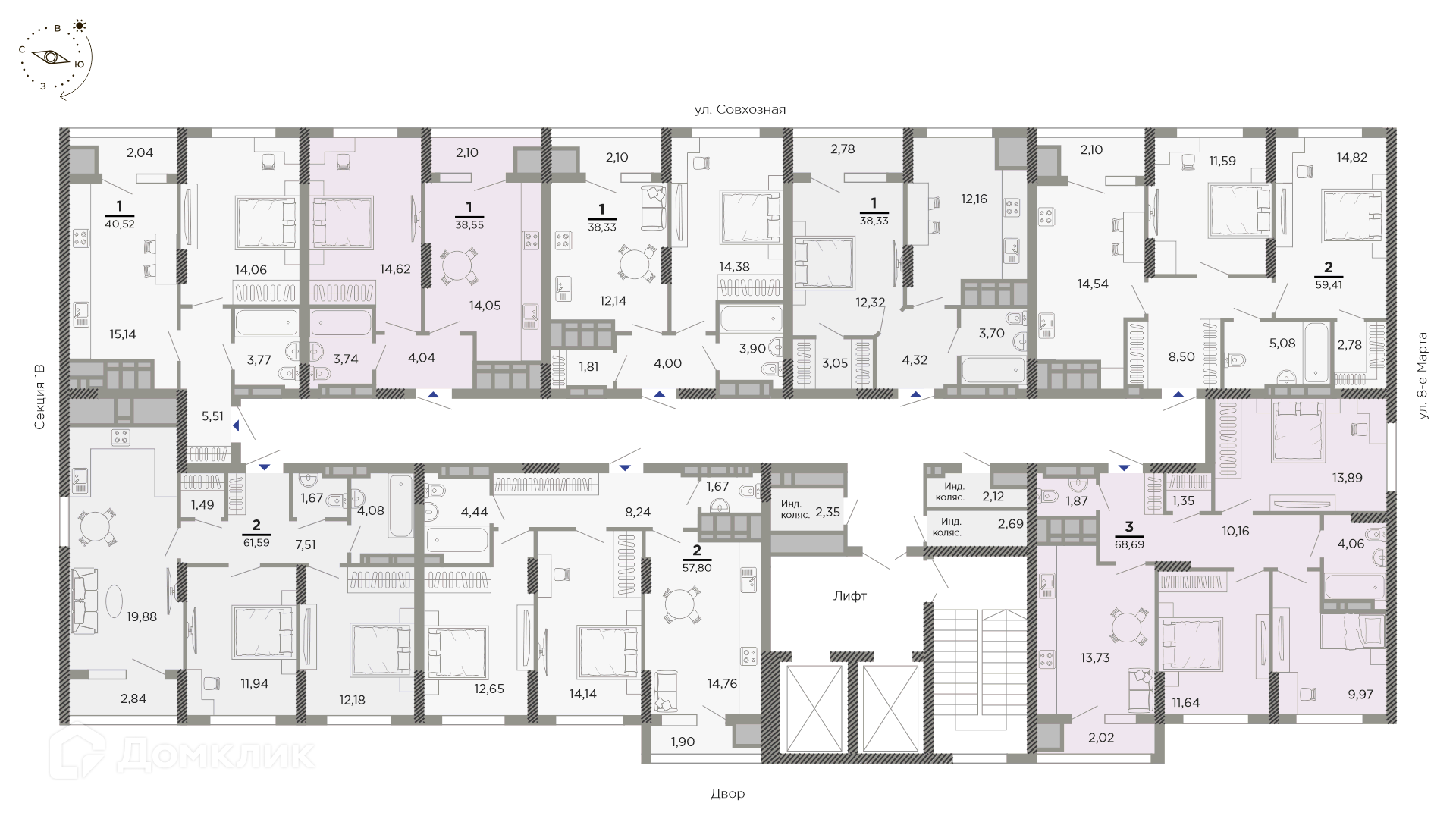 Площади квартир