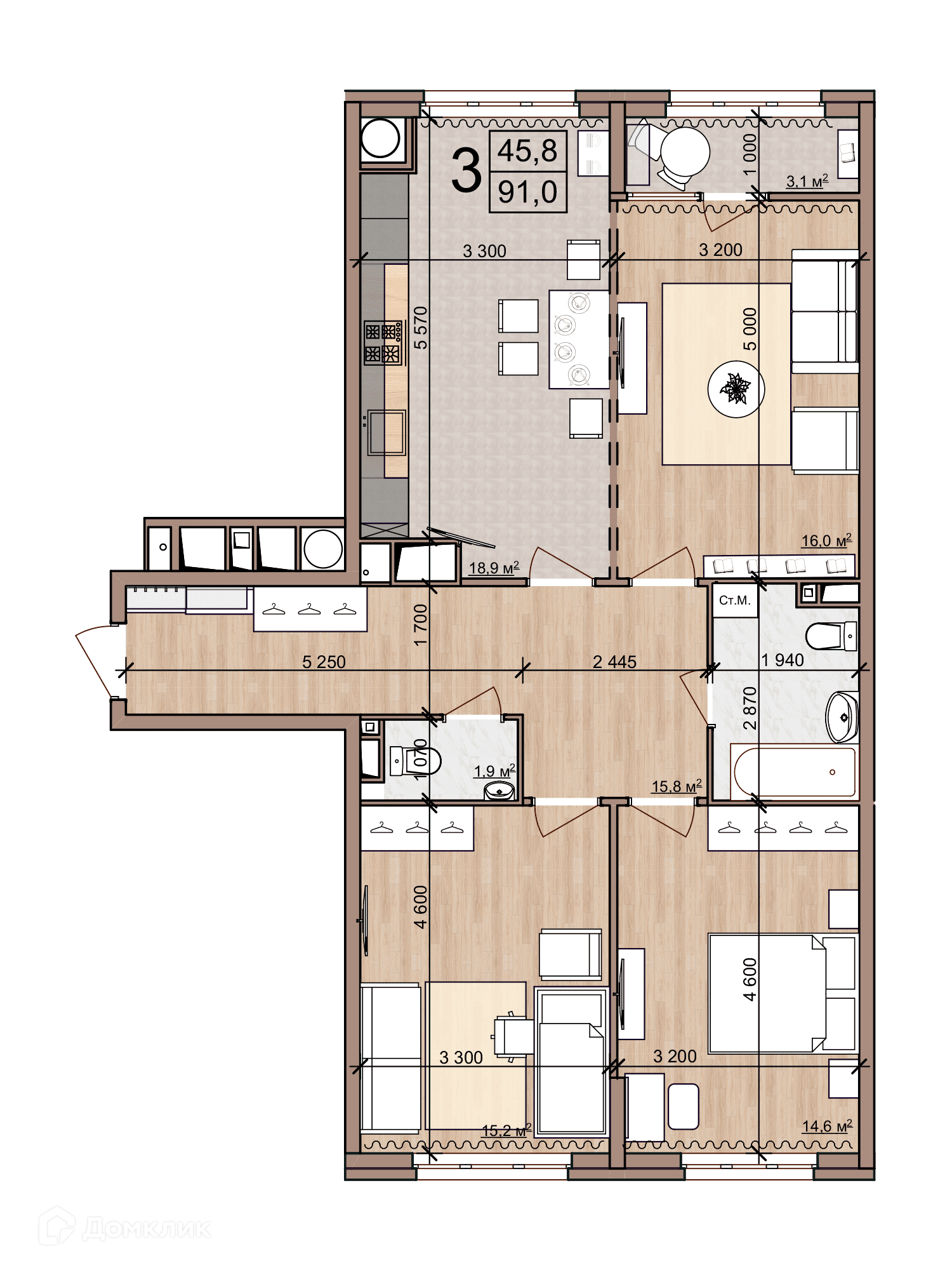 Площади квартир