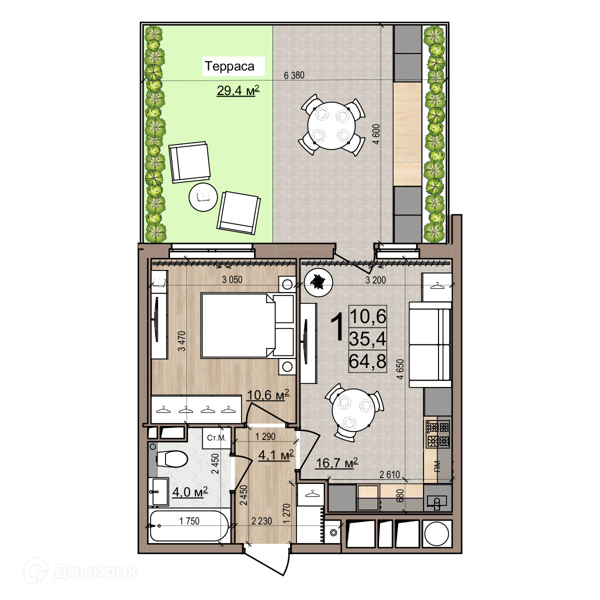 - ✅ Кухня: 16.7 м² — эргономичное пространство.