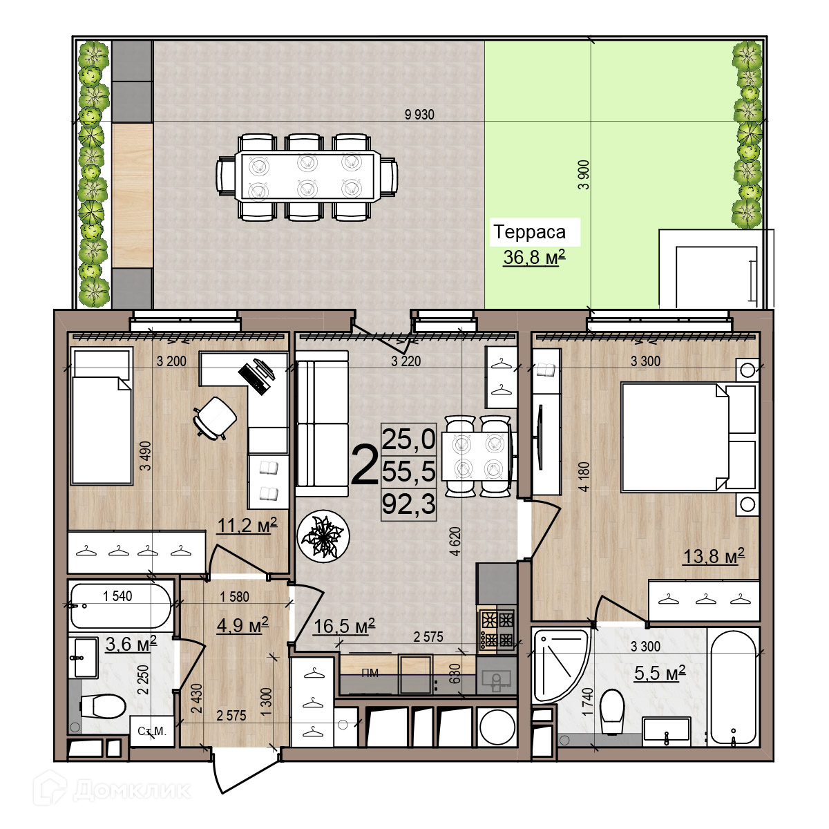 - ✅ Кухня: 16.5 м² — идеальна для семейных ужинов.