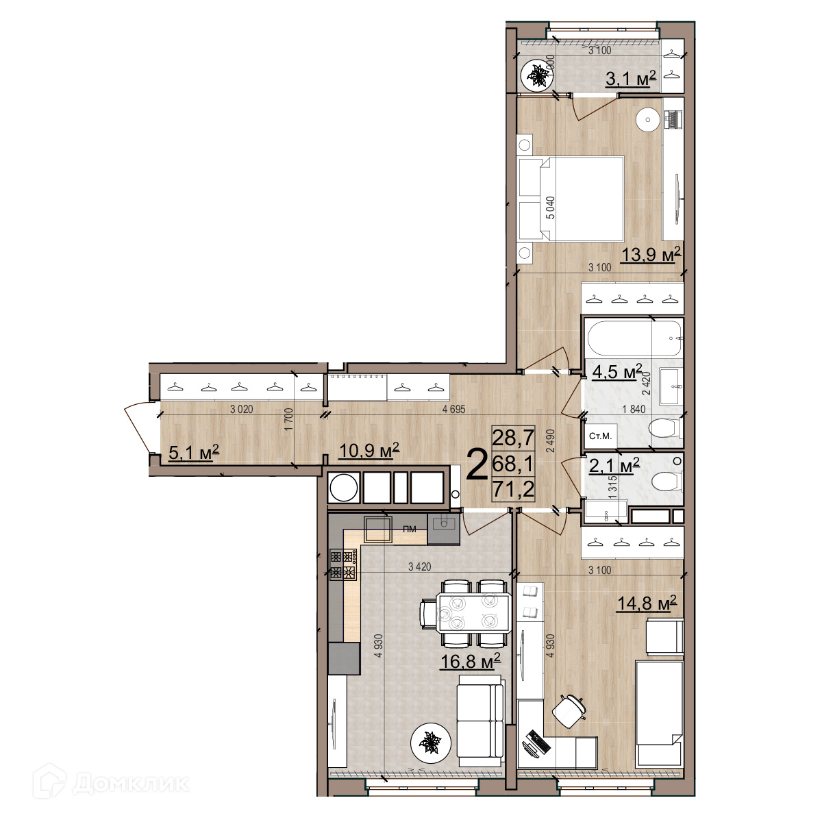 - ✅ Кухня: 16.7 м² — место для кулинарных шедевров.