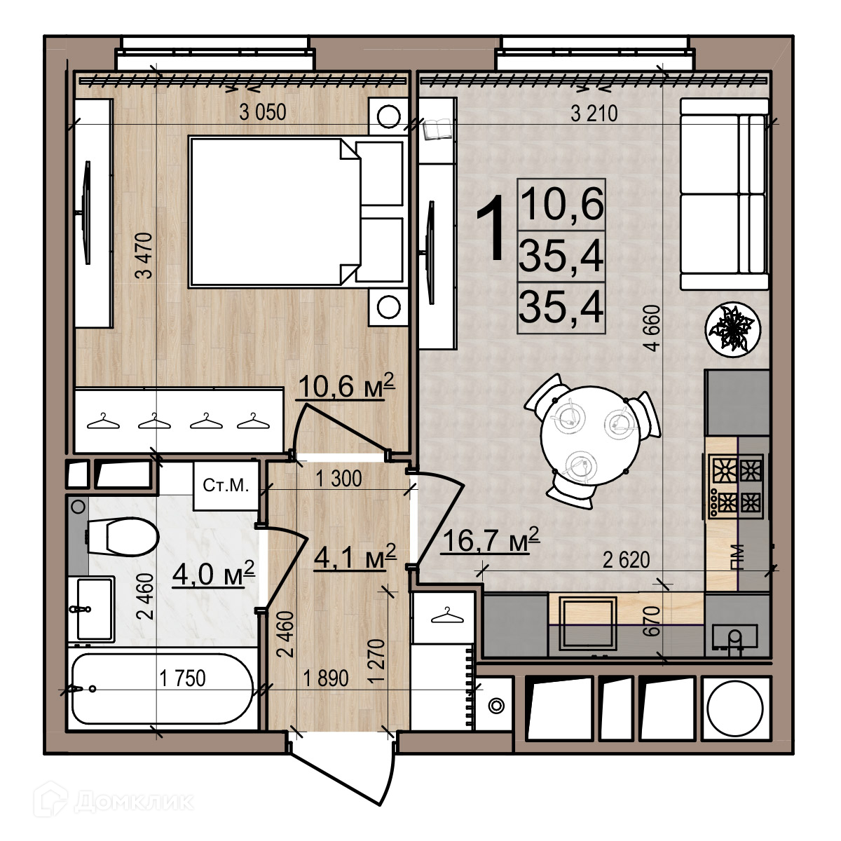 - Количество комнат: 1-комнатная квартира