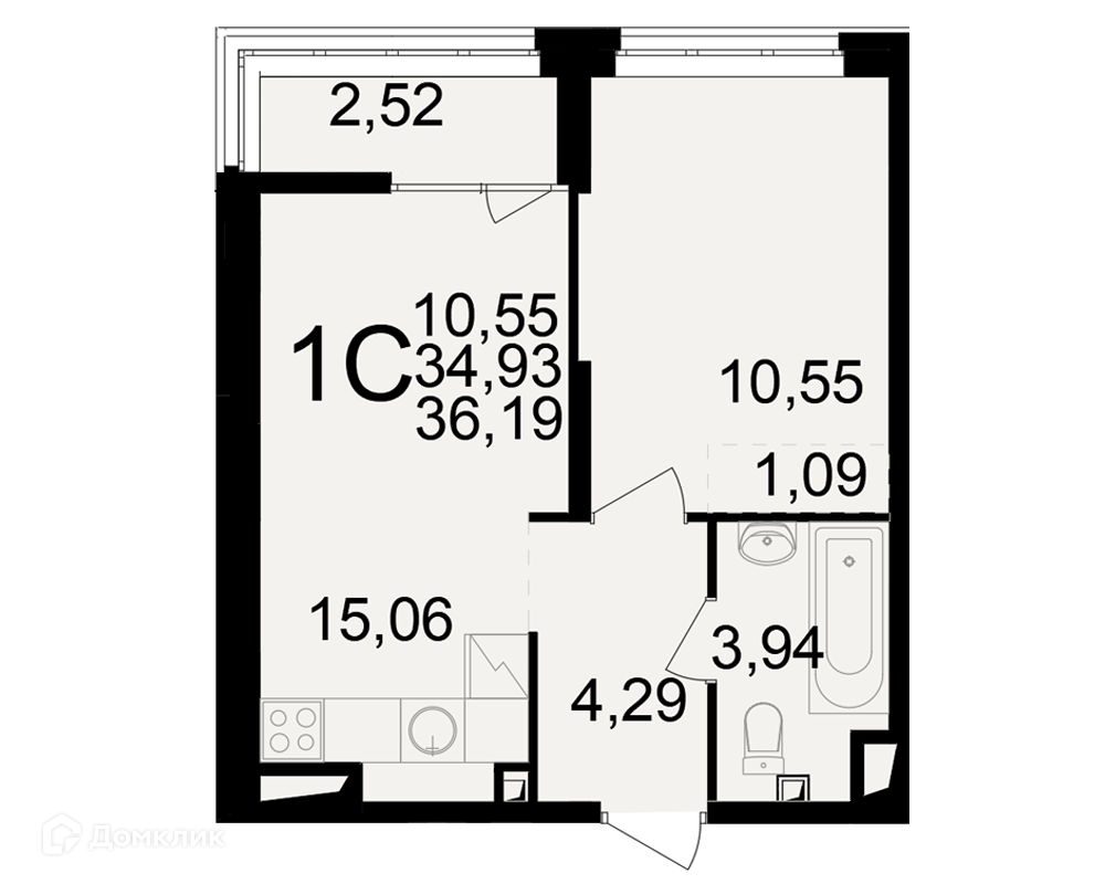 Планировка 1 комн. в ЖК"Новое измерение"