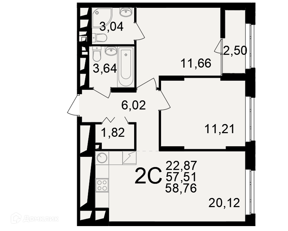 Планировка 2 комн. в ЖК"Новое измерение"