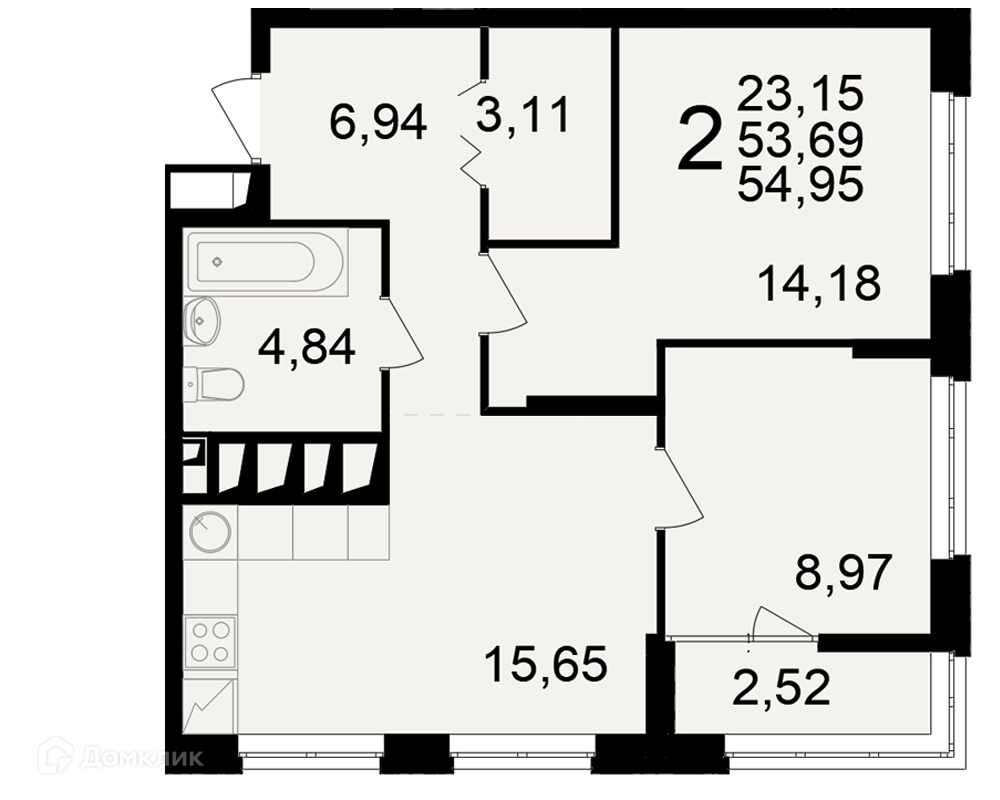Планировка 2 комн. в ЖК"Новое измерение"
