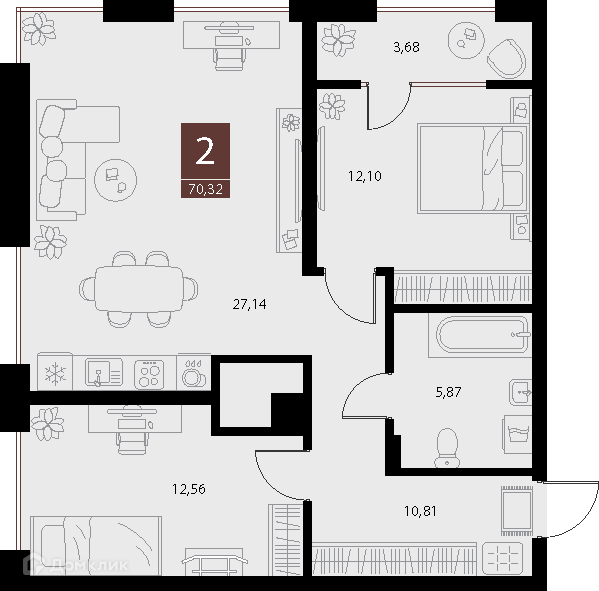 В продаже 2-комнатная квартира в новом жилом комплексе "ЖК «Галерея»" 🏢. Квартира расположена на 5-м этаже 15-этажного дома. Прекрасный выбор для инвестиций.