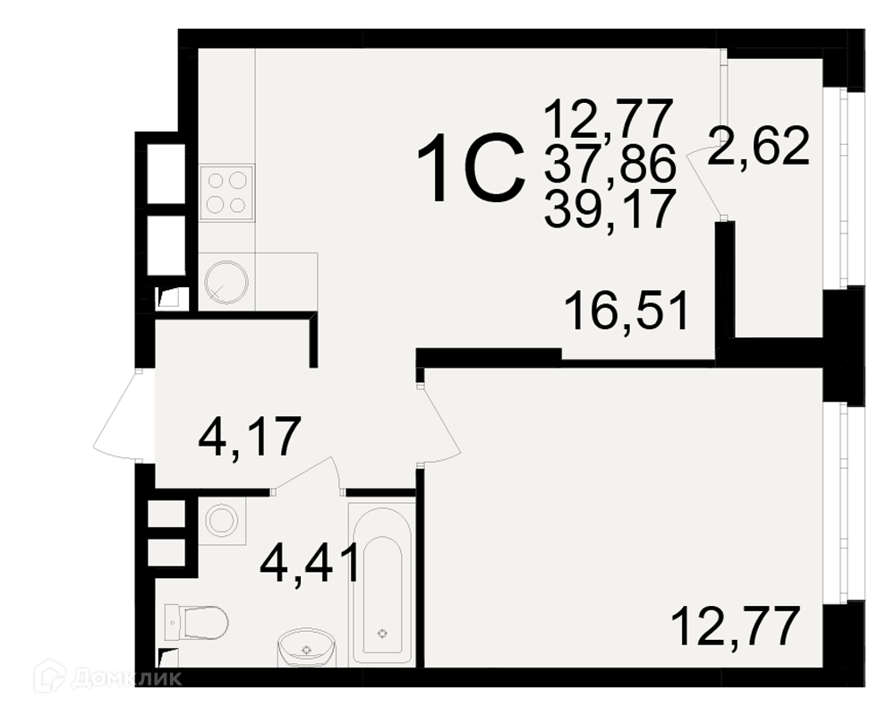 Планировка 1 комн. в ЖК Аура