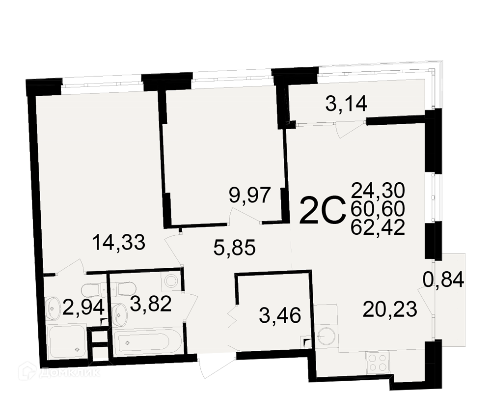 Доступна к покупке 2-комнатная квартира в новом жилом комплексе "ЖК Аура" 🏢. Квартира расположена на 6-м этаже 26-этажного дома. Отличный вариант для семьи.