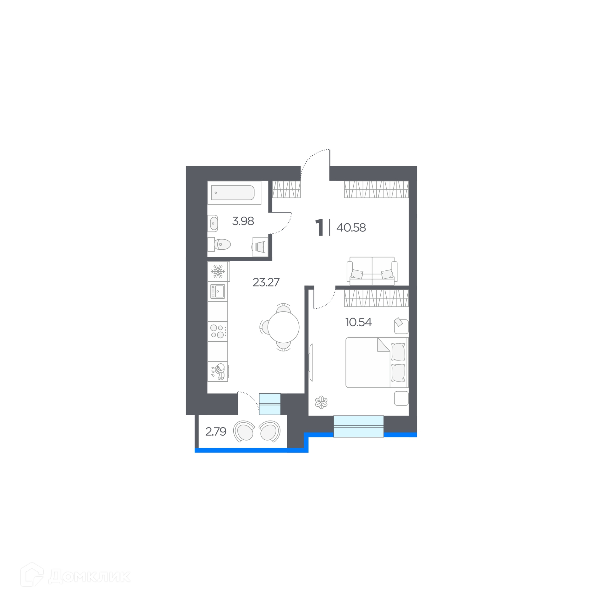 Планировка 1 комн. в ЖК ОГНИ