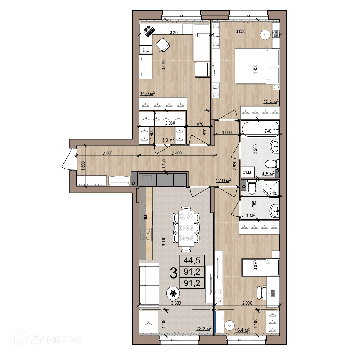 - ✅ Кухня: 23.2 м² — идеальна для семейных ужинов.