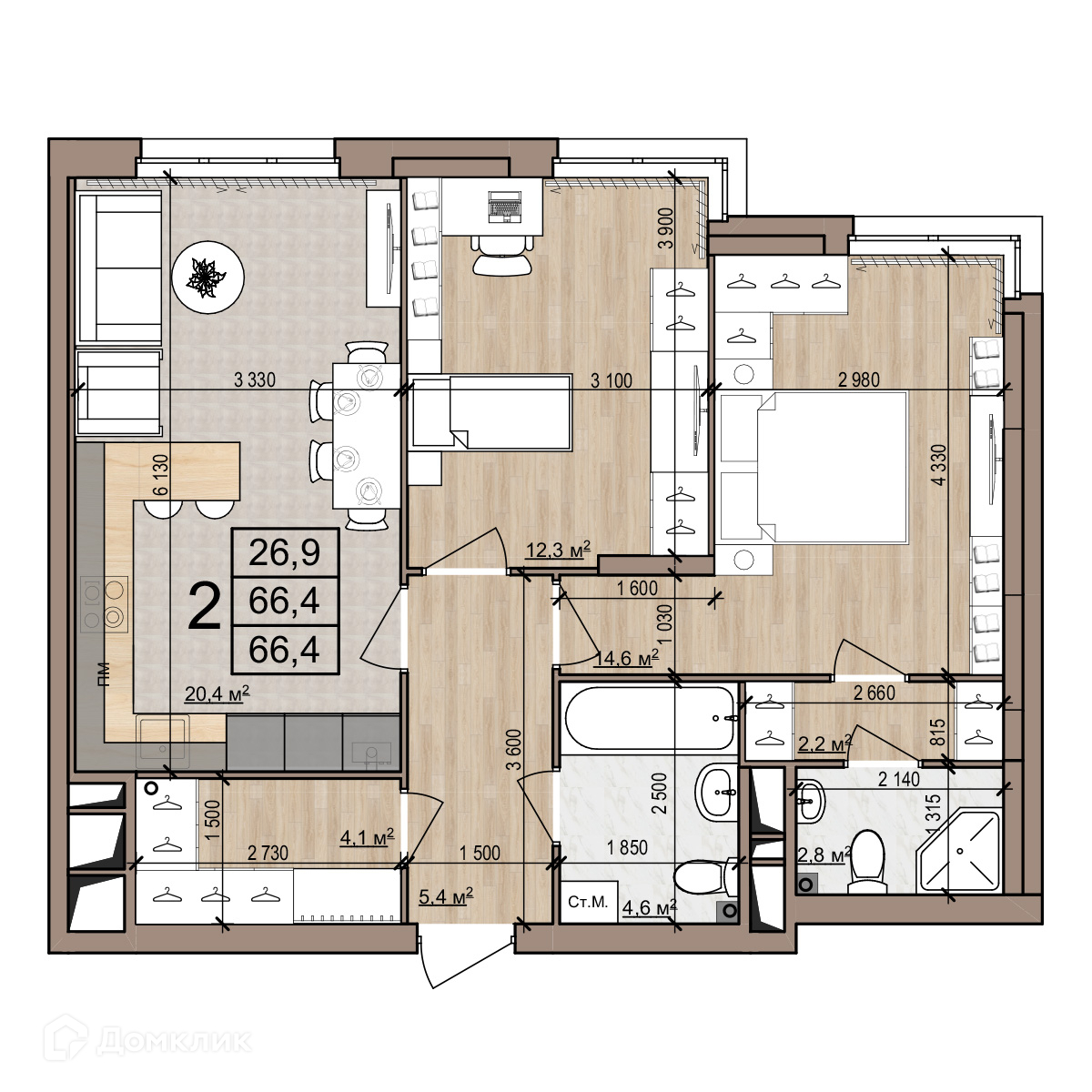 53.4 м²