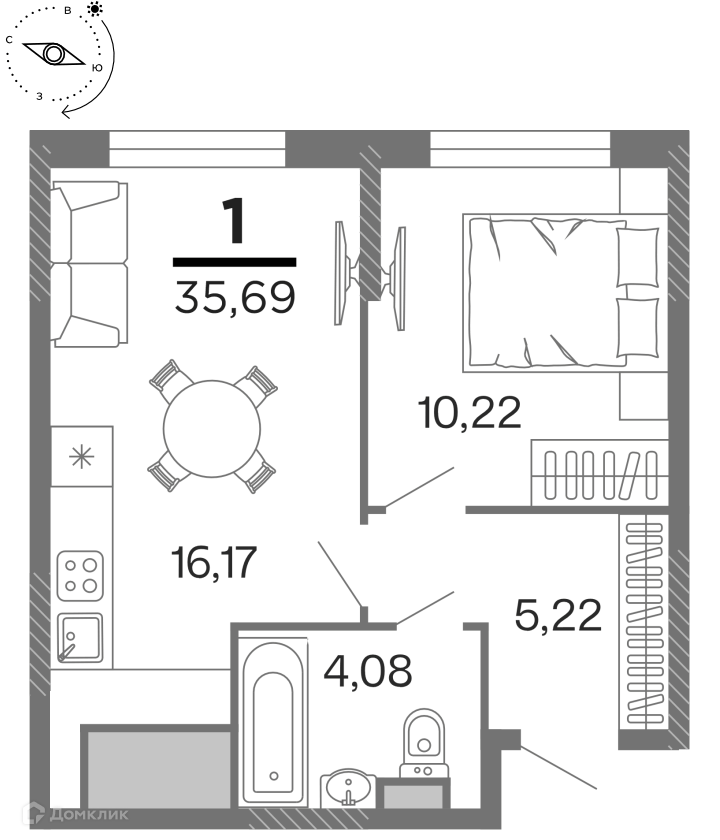 - Общая площадь: 35.69 м²