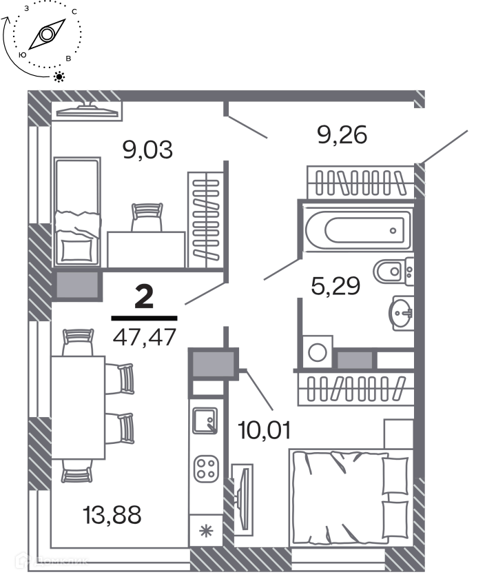Продается 2-комнатная квартира в новом жилом комплексе "Кипарис (Дом на Быстрецкой)" 🏢. Квартира расположена на 9-м этаже 25-этажного дома. Прекрасный выбор для комфортной жизни.