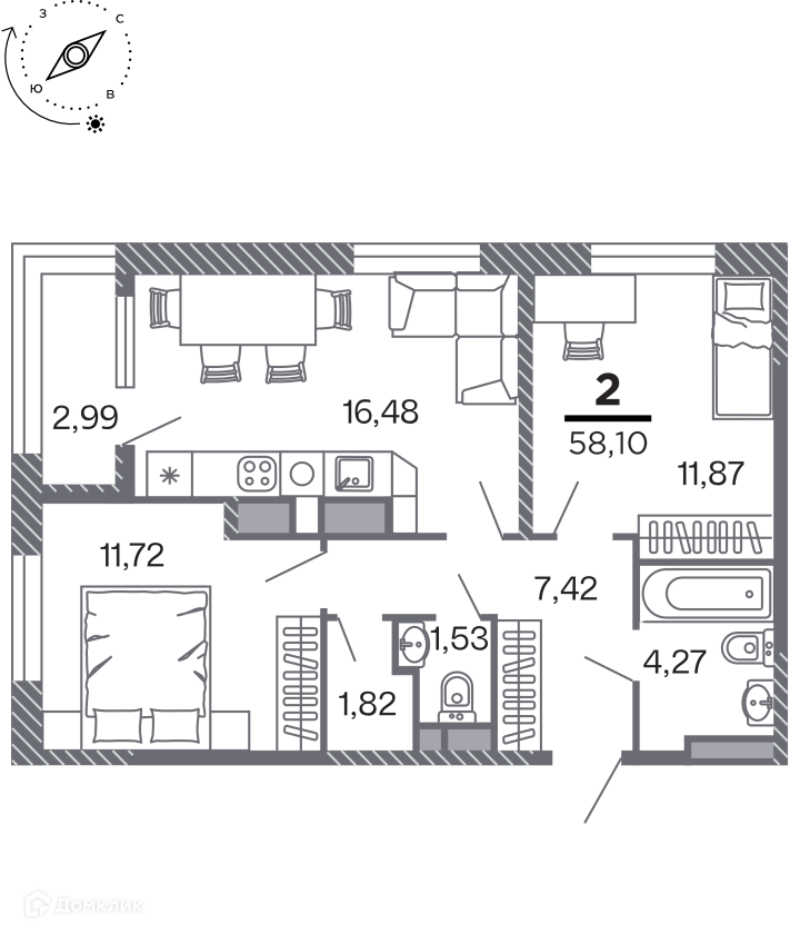 Продается 2-комнатная квартира в новом жилом комплексе "Кипарис (Дом на Быстрецкой)" 🏢. Квартира расположена на 11-м этаже 25-этажного дома. Прекрасный выбор для семьи.